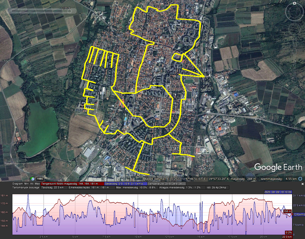 VÁROSBAN: Műholdképen, adatokkal így mutat a bringával rajzolt 9 km hosszú vaddisznó (Google Earth)